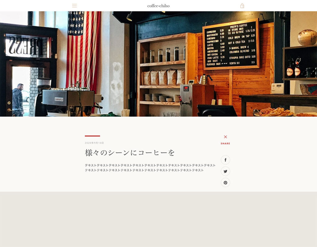 今回は無料テーマNarrativeを使ってコーヒー豆ショップを作成してみました。